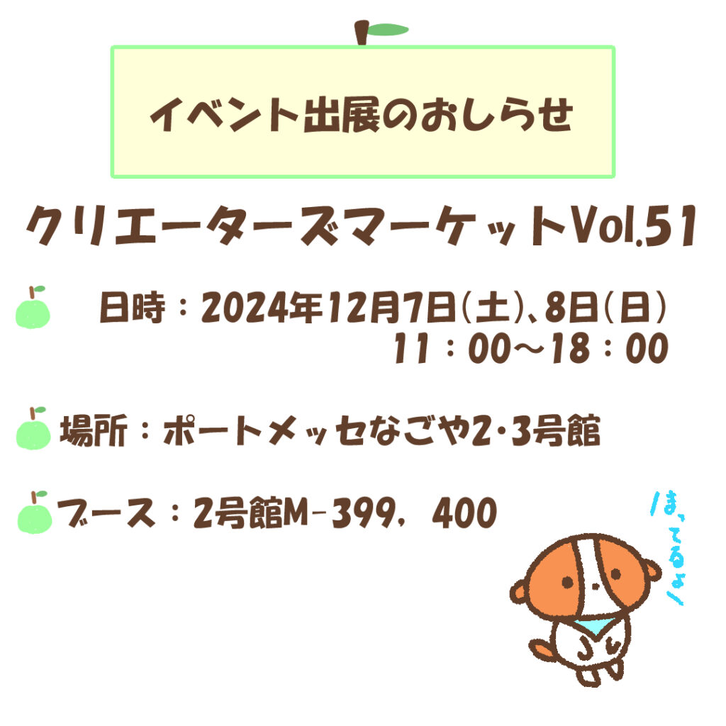 クリエーターズマーケットVol .51に出展いたします!” に対して1件のコメントがあります。