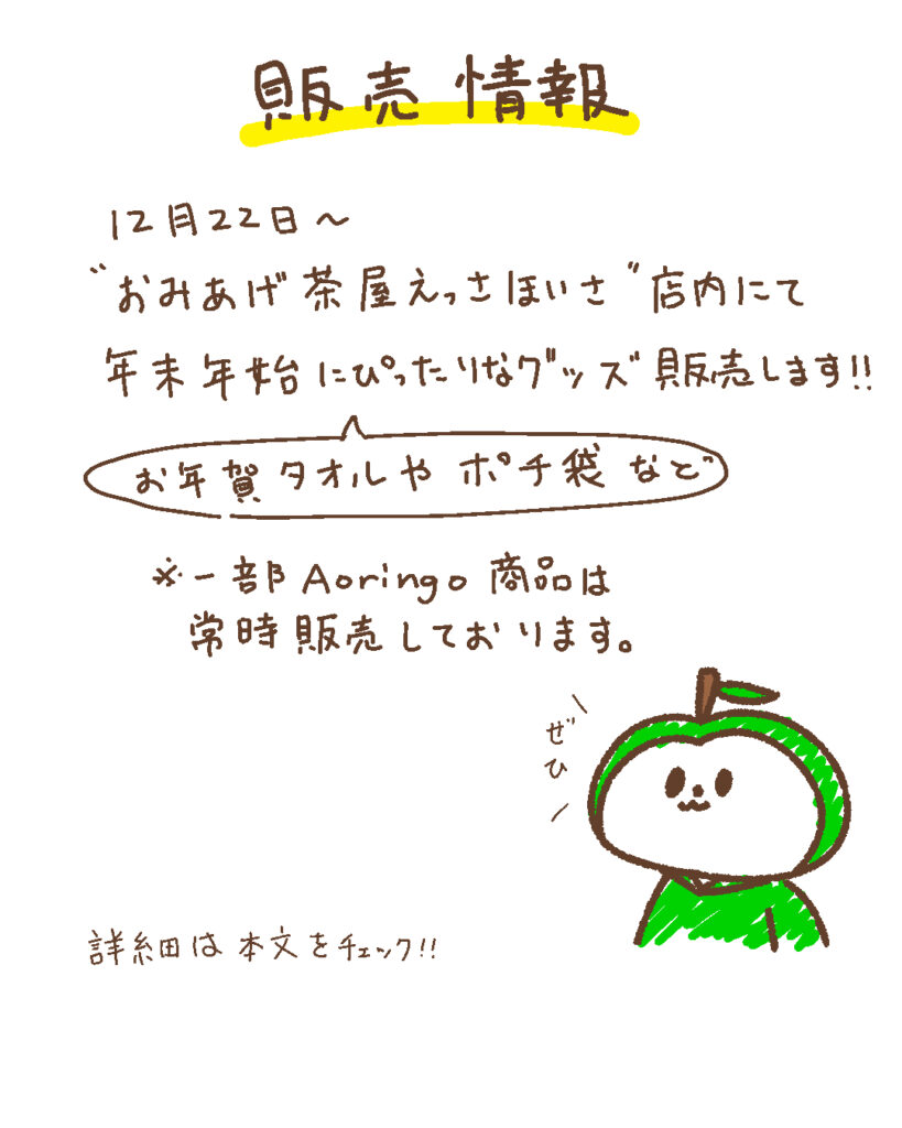おみあげ茶屋えっさほいさ店内にて年末年始に向けたオリジナルグッズを販売しております。